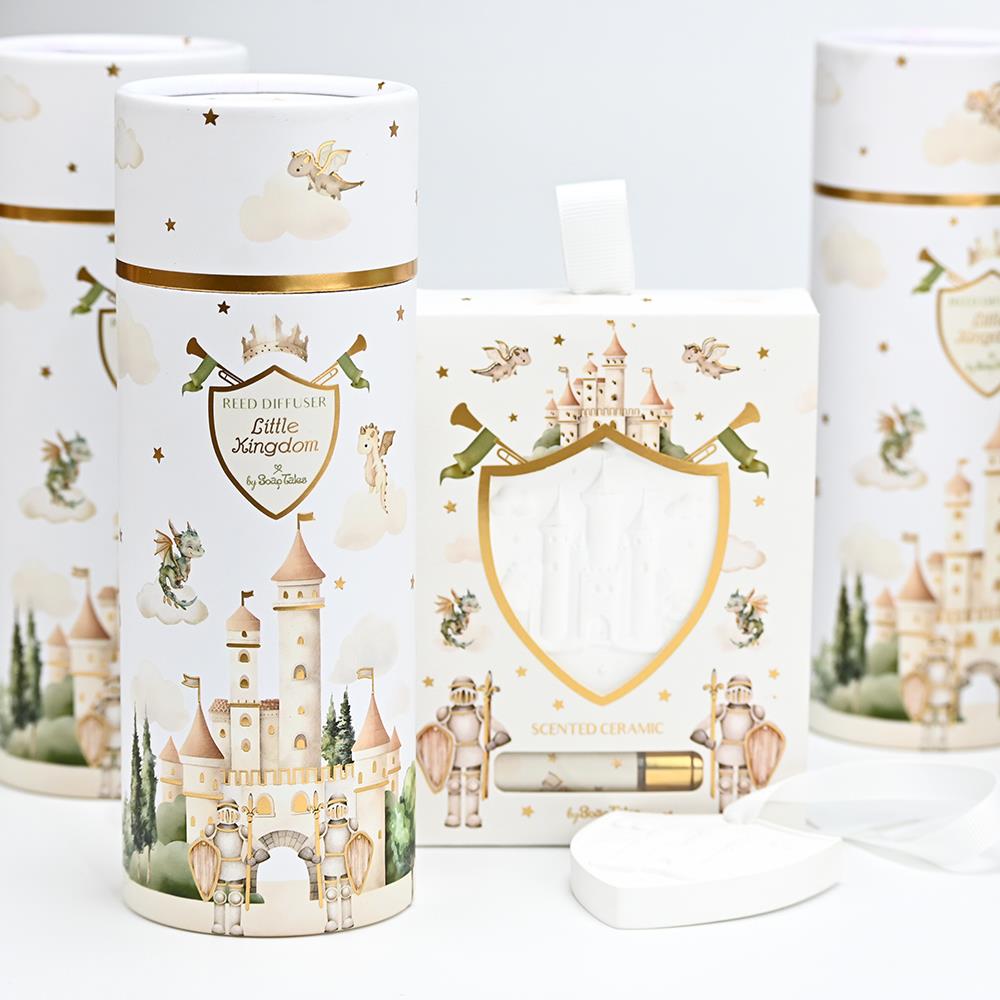 Ταξιδέψτε σε έναν κόσμο μαγείας και περιπέτειας με το αρωματικό χώρου 50ml της SoapTales!Με θέμα τους ιππότες και τα κάστρα, αυτό το μοναδικό προϊόν ξεχωρίζει για τα υπέροχα γραφικά του, διακοσμημένα με κομψές χρυσοτυπίες που αποπνέουν πολυτέλεια και φινέτσα.Το άρωμα του χαρίζει μια αίσθηση δροσιάς και φρεσκάδας. Ιδανικό για να μεταμορφώσει κάθε χώρο σε έναν παράδεισο χαλάρωσης και ηρεμίας.Ιδανικό για εκδηλώσεις βάπτισης, προσθέτει μια πινελιά φαντασίας και ρομαντισμού σε κάθε χώρο.Είναι επίσης μια εξαιρετική επιλογή δώρου για αγαπημένα πρόσωπα, συνδυάζοντας αισθητική, διαχρονικό άρωμα και εντυπωσιακή παρουσίαση.Ανακαλύψτε τη μαγεία της SoapTales και χαρίστε στους καλεσμένους σας μια εμπειρία που θα μείνει αξέχαστη!