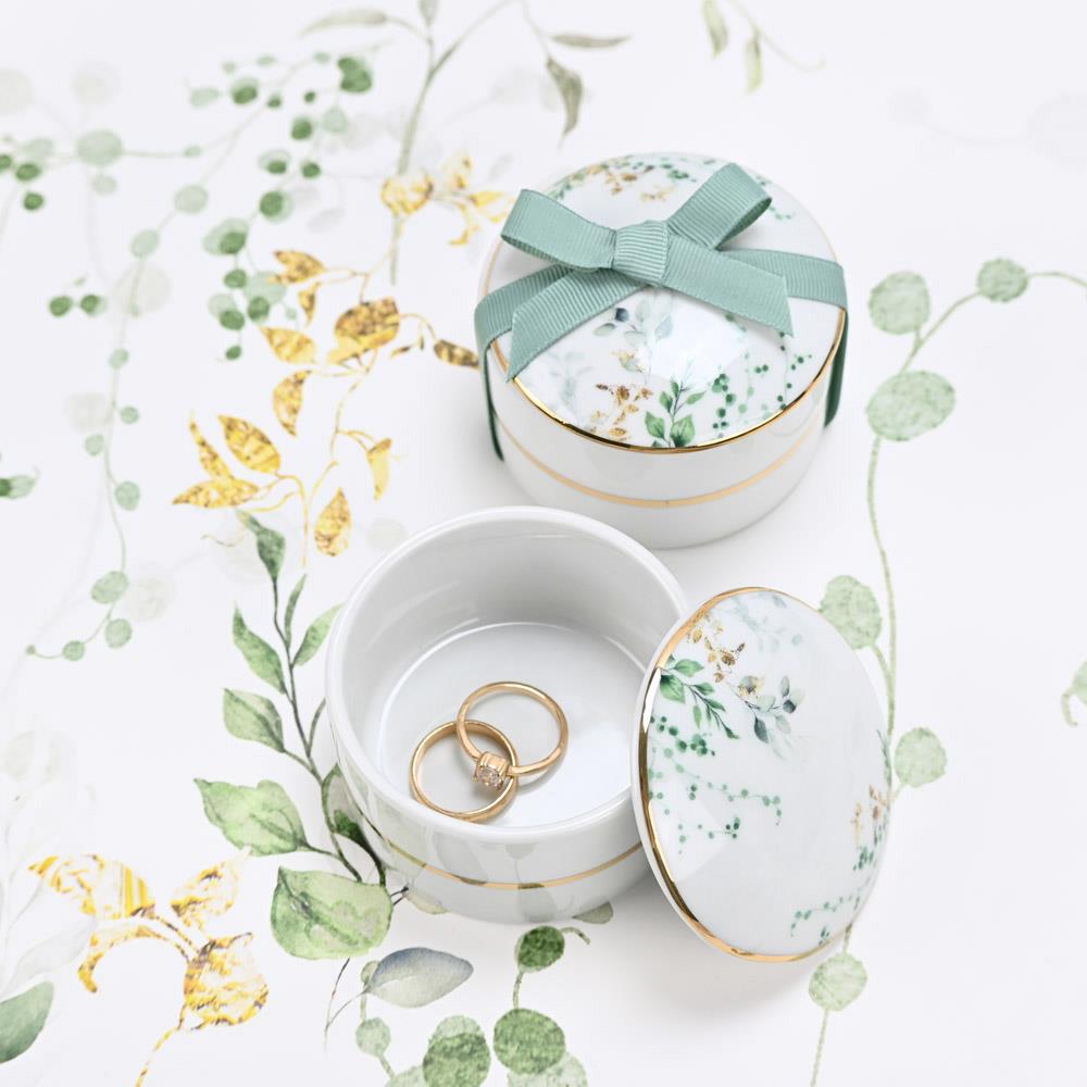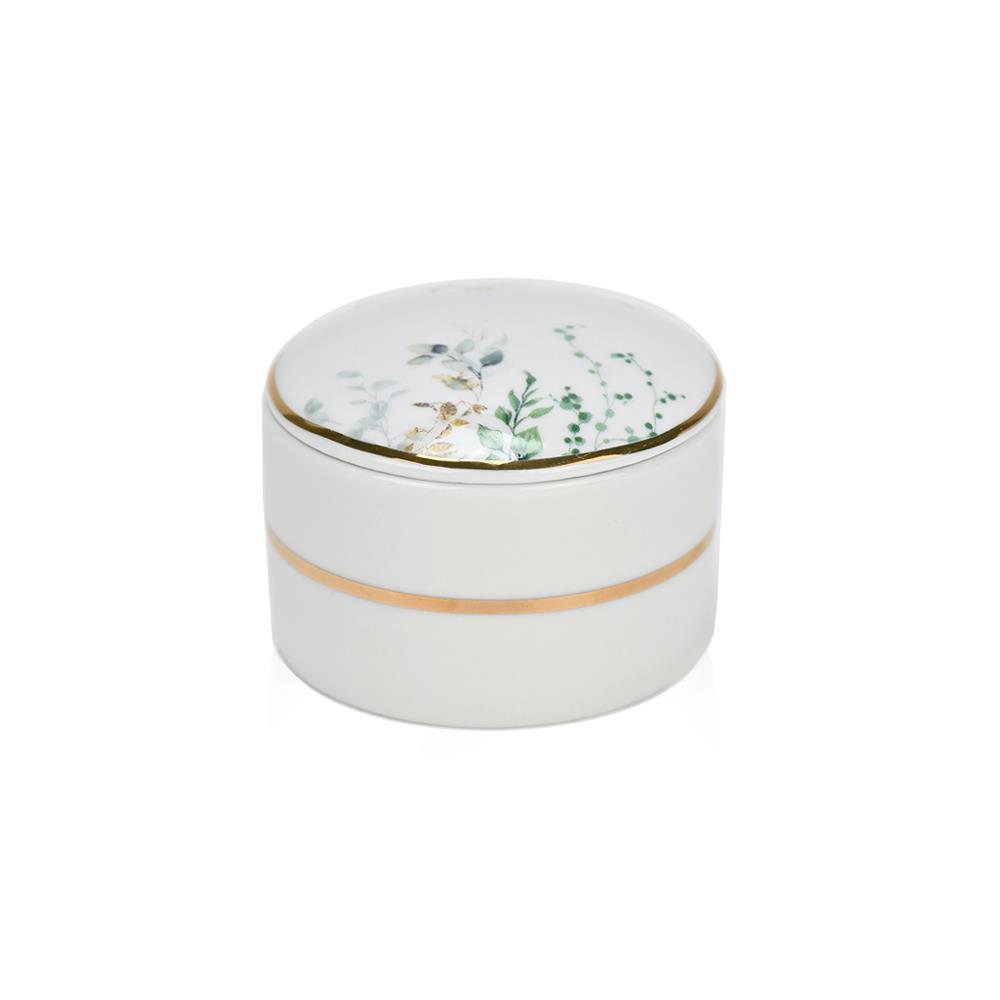 Μπιζουτιέρα από πορσελάνη Eden SoapTalesΠορσελάνινη μπιζουτιέρα με botanical σχέδιο σε αποχρώσεις του πράσινου, που φέρνει τη φρεσκάδα της φύσης σε κάθε χώρο.Η χρυσή λεπτομέρεια, από χρυσό, ολοκληρώνει την κομψή αισθητική και προσθέτει διακριτική πολυτέλεια.Μια ξεχωριστή επιλογή για να φυλάξετε κοσμήματα, κουφέτα ή μικρούς θησαυρούς, ιδανική για μπομπονιέρα γάμου ή βάπτισης, αλλά και ως δώρο.
