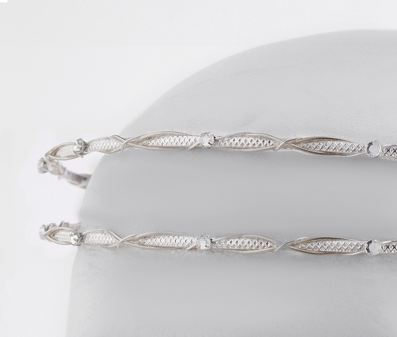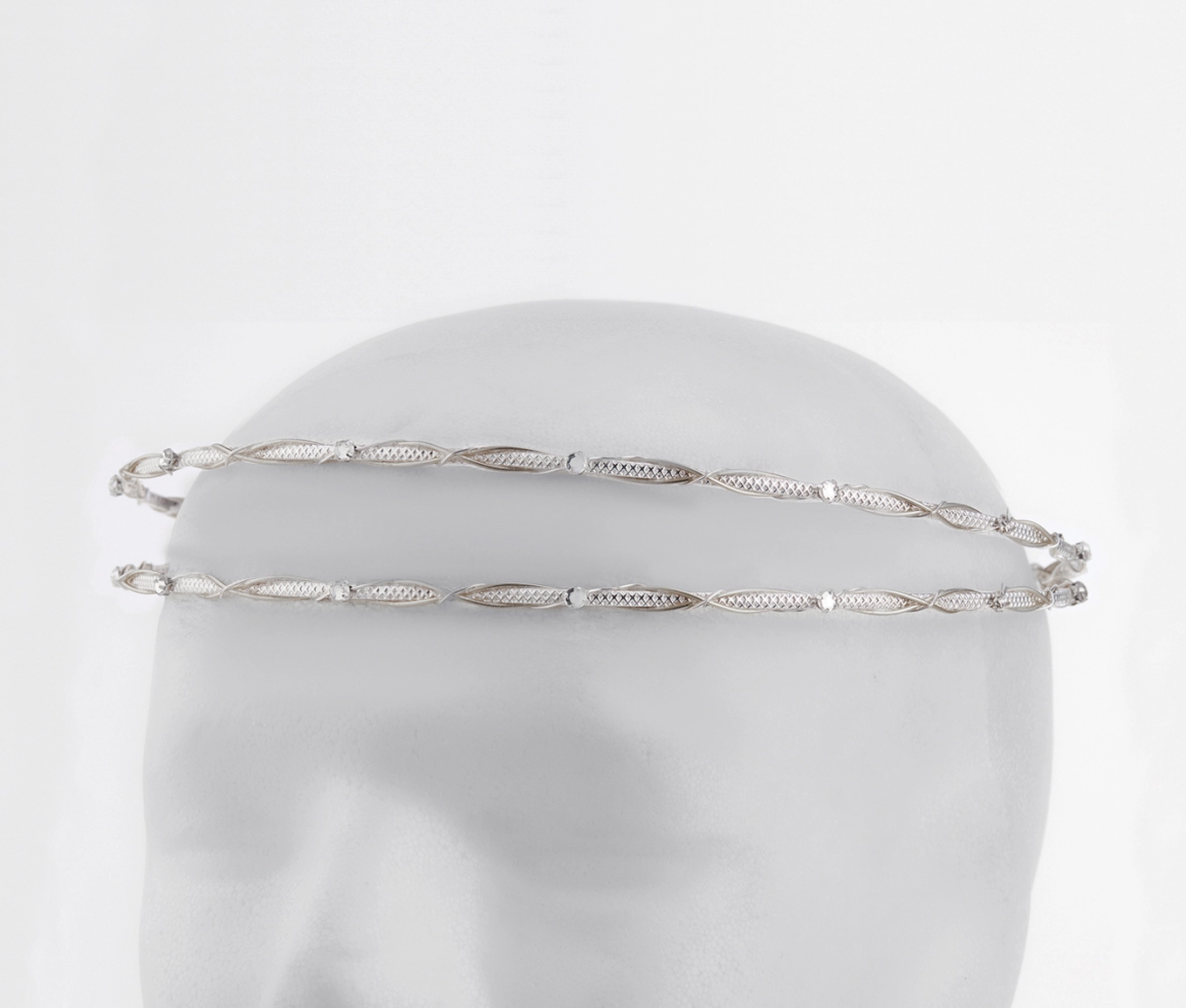 *Χειροποίητα δίβεργα επάργυρα στέφανα γάμου με ασημένιες λεπτομέρειες.