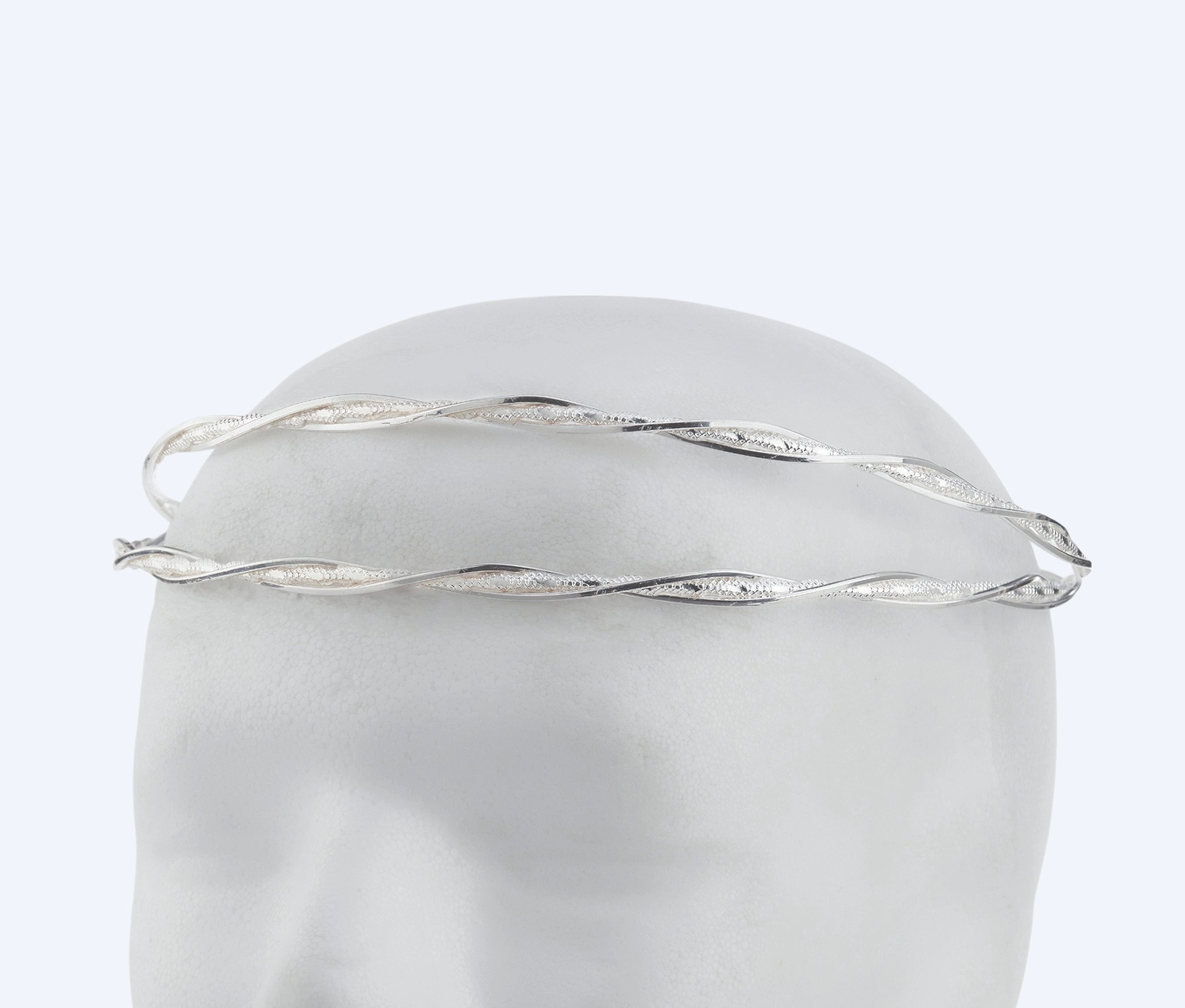 *Χειροποίητα δίβεργα επάργυρα στέφανα γάμου με ασημένιες λεπτομέρειες.