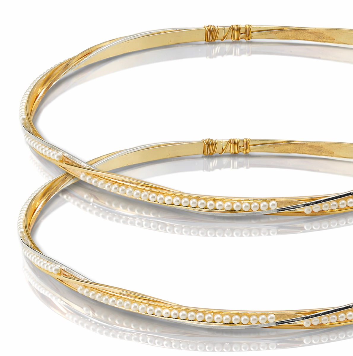 Επάργυρα στέφανα γάμου χειροποίητα με χρυσές και ασημί λεπτομέρειες και πέρλες
