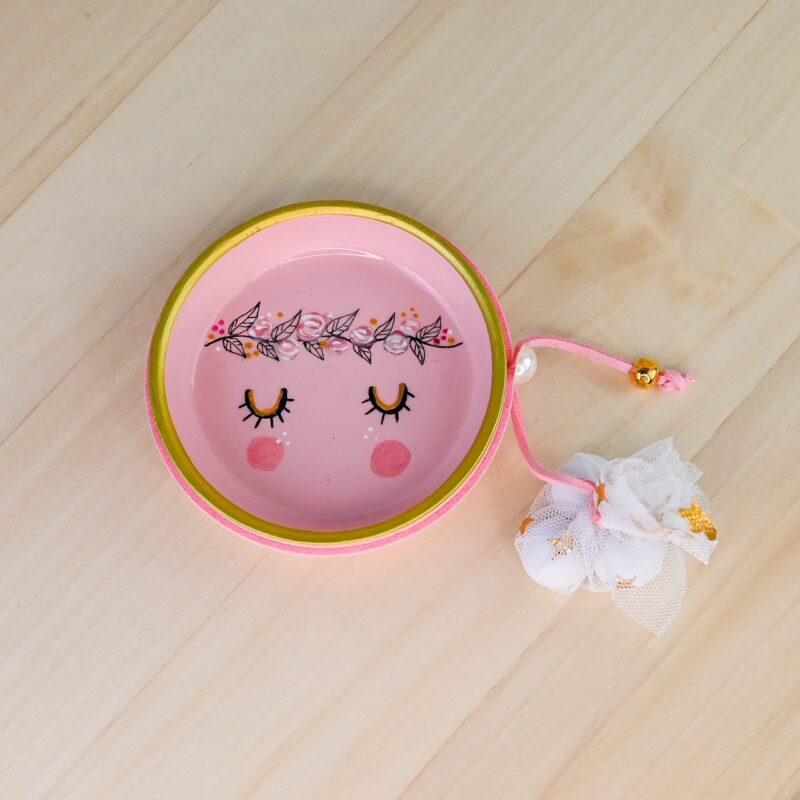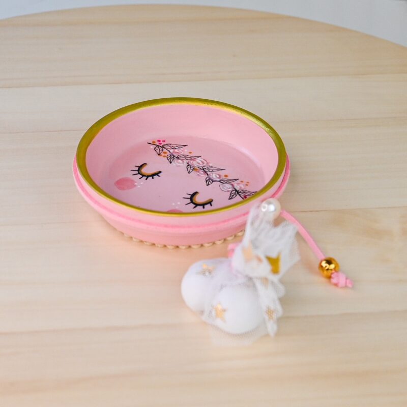 Μπομπονιέρα διακοσμητικό κεραμικό πιατελίνι, σε χρυσές και ροζ αποχρώσεις.