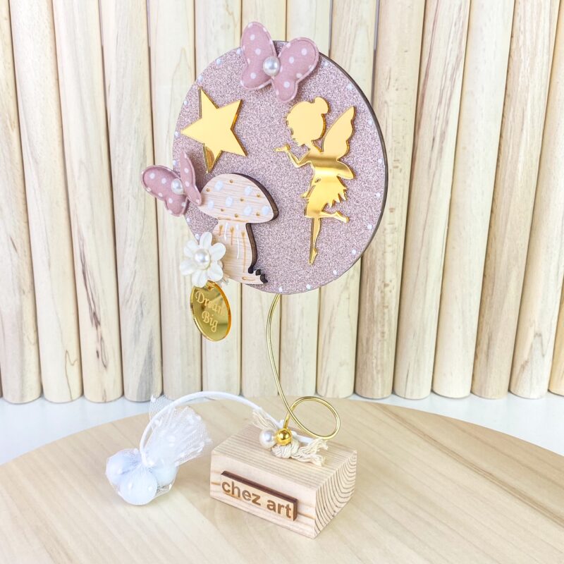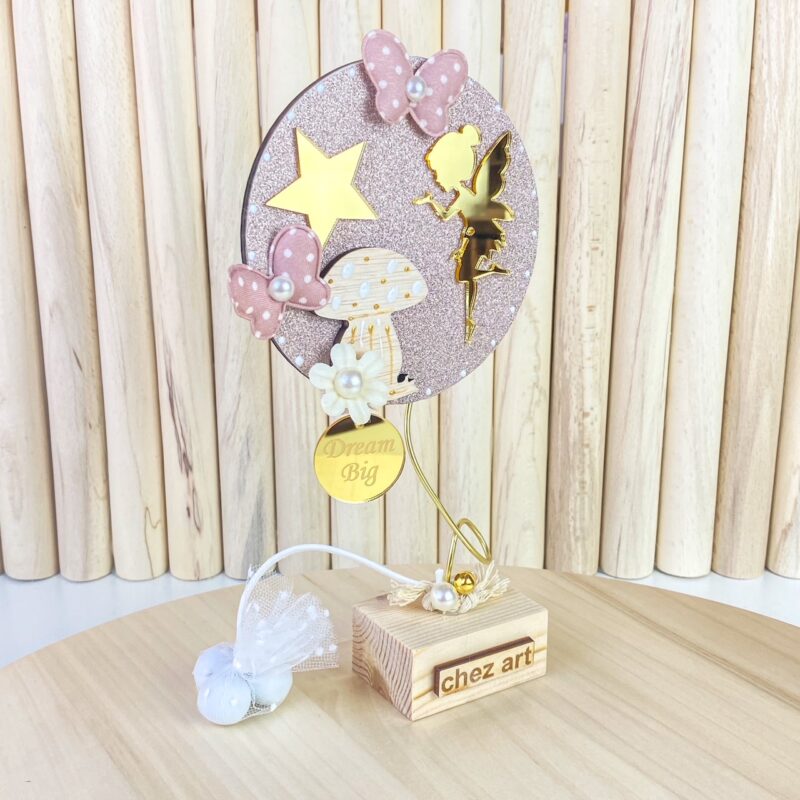 Ξύλινο επιτραπέζιο διακοσμητικό, σε rose gold print και χρυσές εντυπωσιακές λεπτομέρειες, με θέμα νεράιδα.