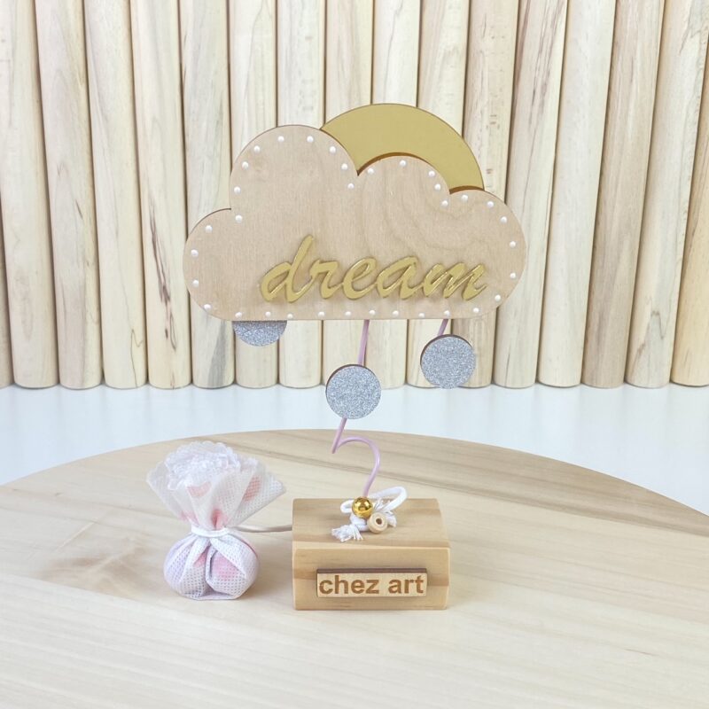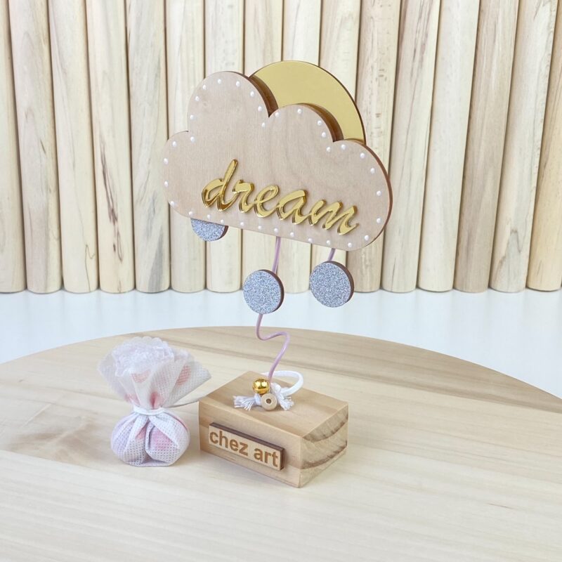 Ξύλινο διακοσμητικό επιτραπέζιο, σε ροζ χρυσό αποχρώσεις, με θέμα σύννεφο.
