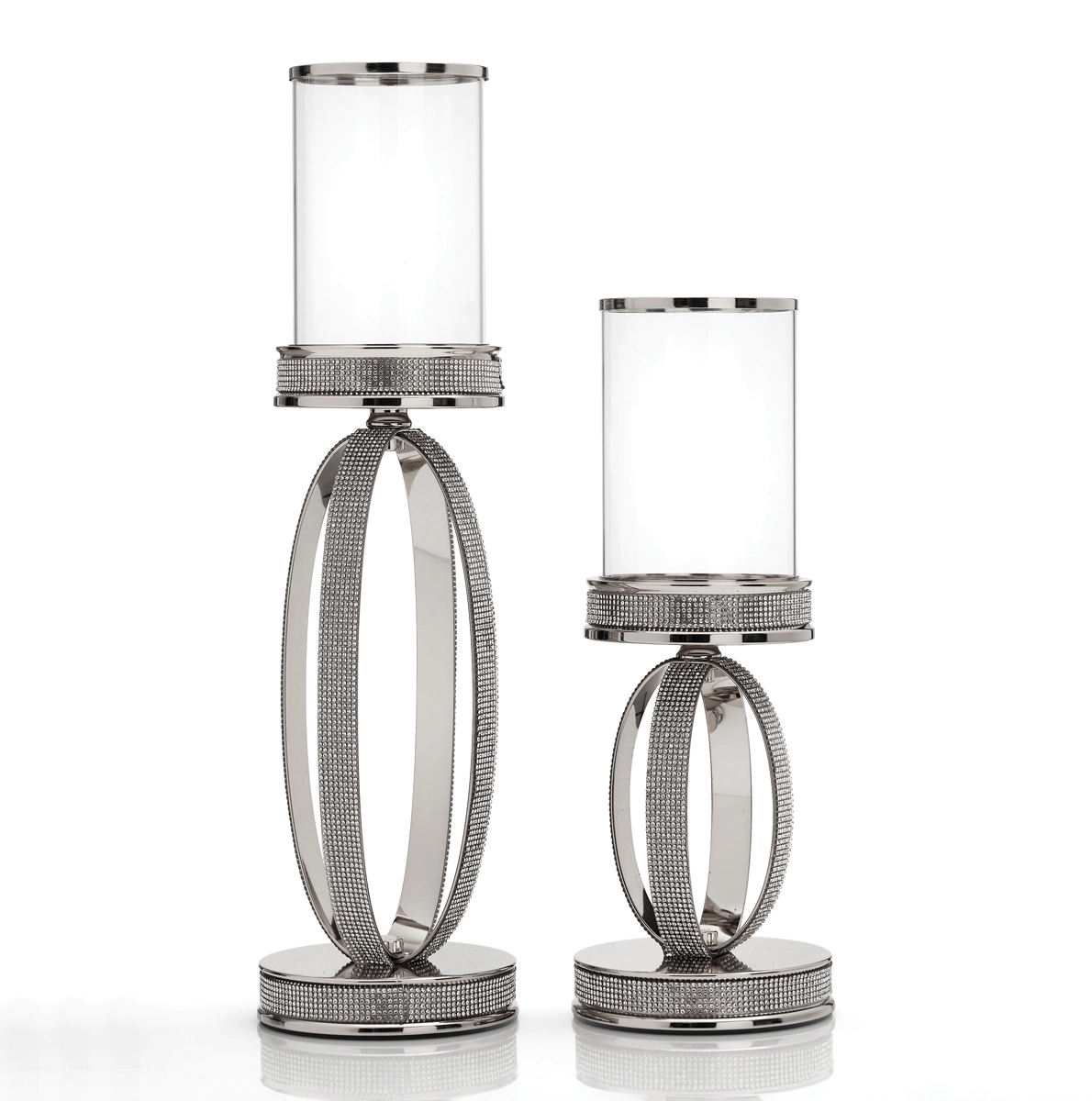 Το σετ λαμπάδων γάμου διαθέτει κρυστάλλινα κηροπήγια με ασημένιες λεπτομέρειες και γυάλινο επάνω μέρος.