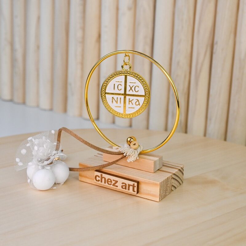 Διακοσμητικό μεταλλικό μοτίφ εκκρεμές, σε χρυσές και λευκές αποχρώσεις, με θέμα κωνσταντινάτο.
