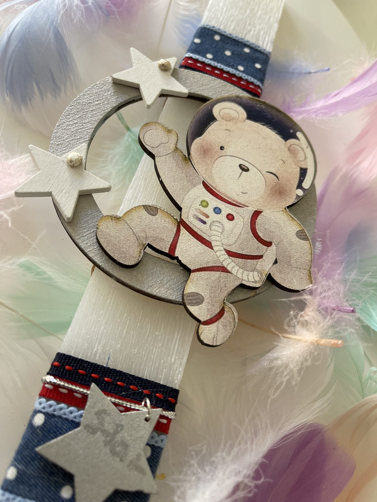 Χειροποίητη πασχαλινή αρωματική λαμπάδα με πλακέ κερί ”Αστροναύτης”