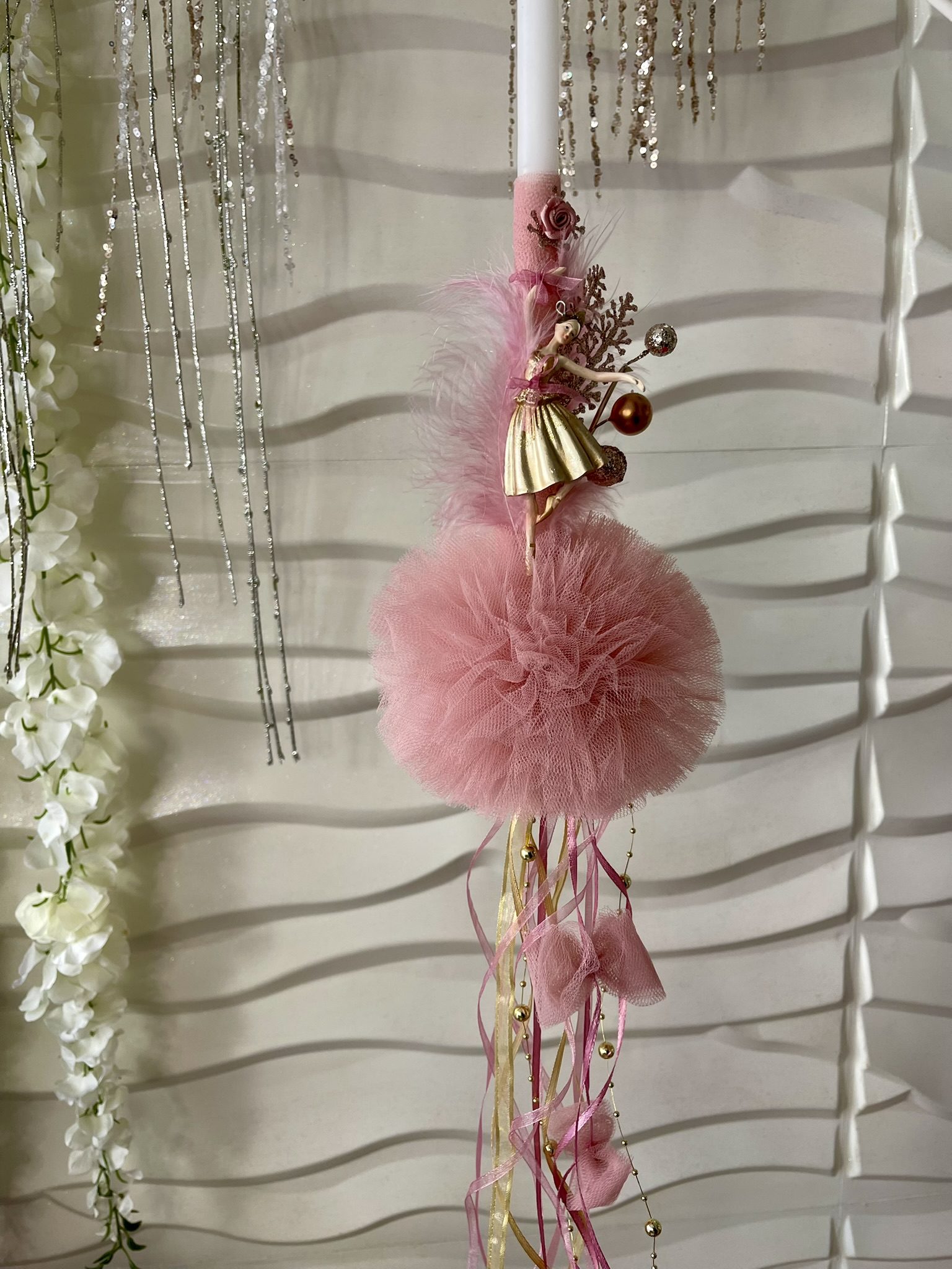 Χειροποίητη πασχαλινή αρωματική λαμπάδα λευκή με μπαλαρίνα, glitter , χρυσές πέρλες ,