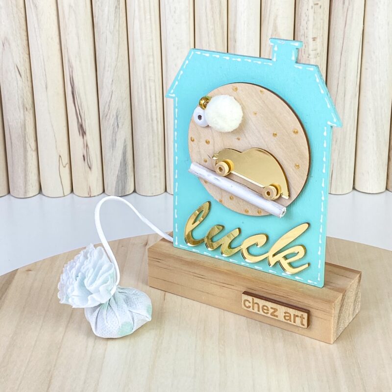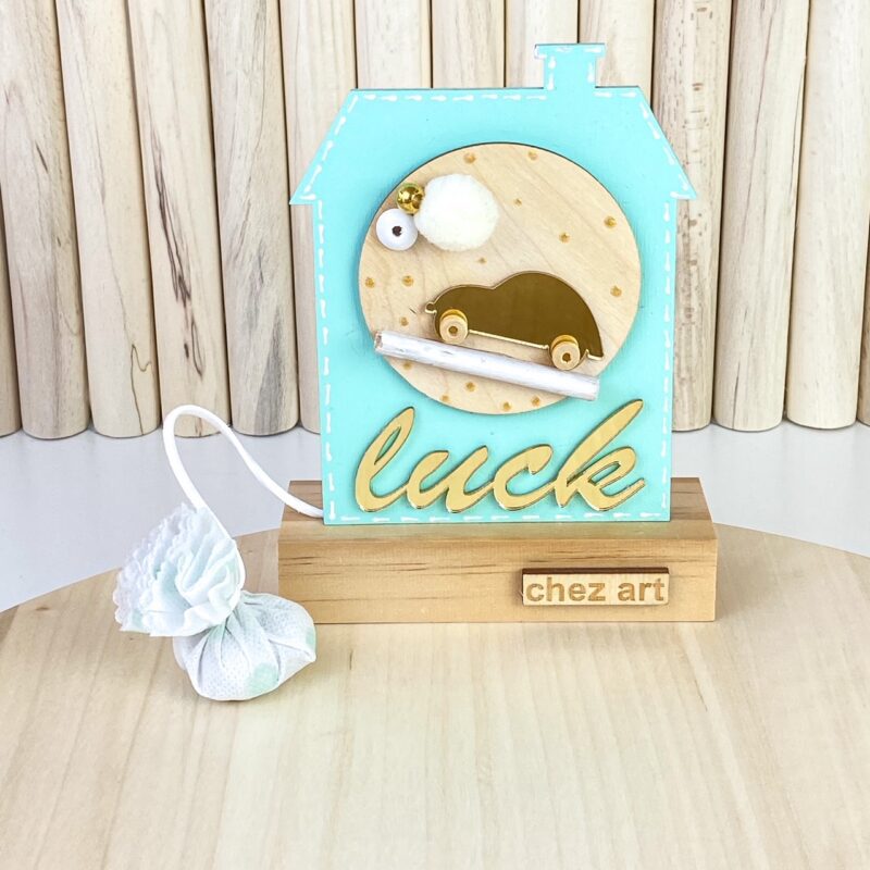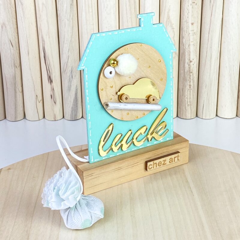 Ξύλινο διακοσμητικό επιτραπέζιο, σε βεραμάν, χρυσό αποχρώσεις, με θέμα σπιτάκι.