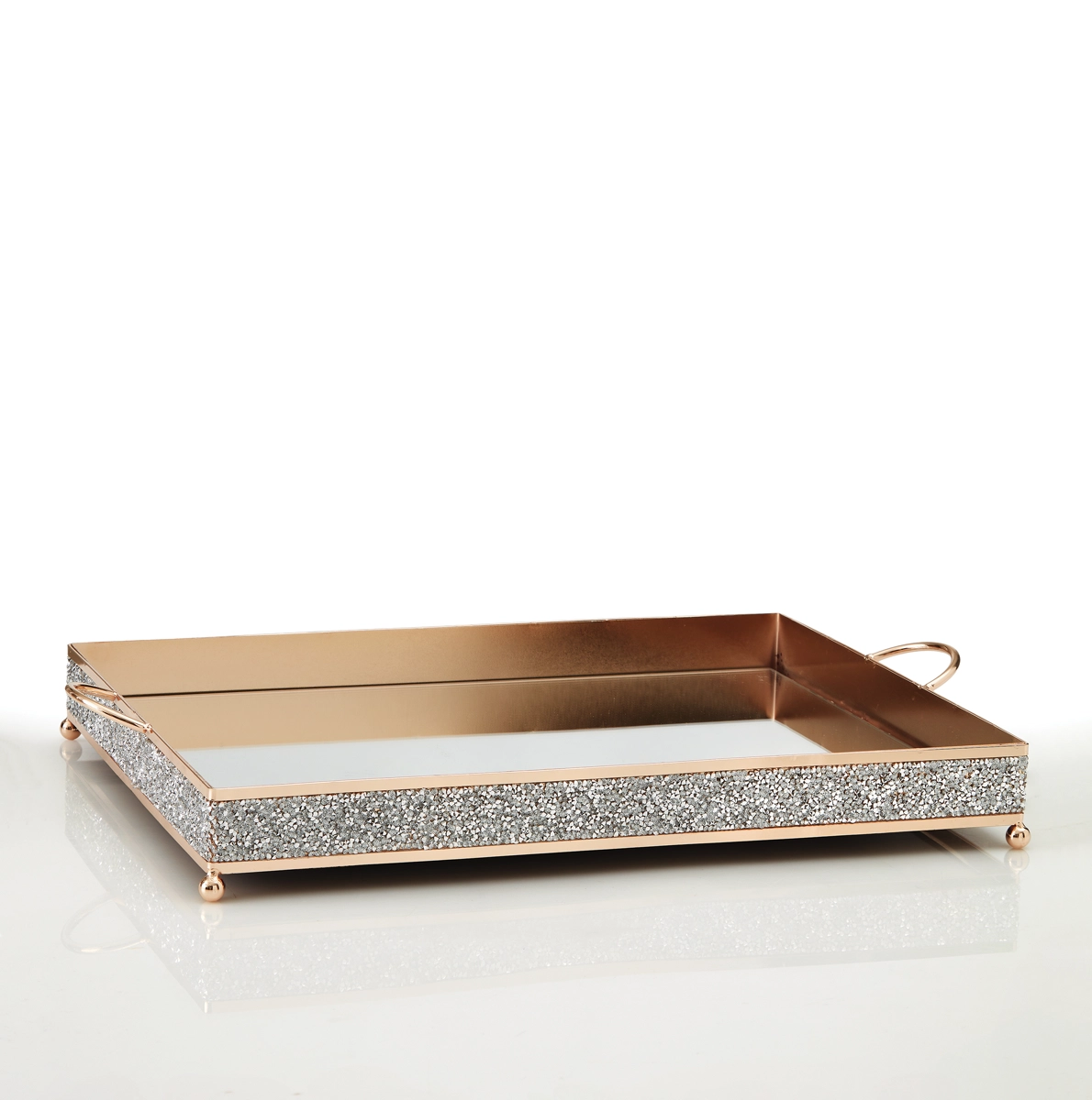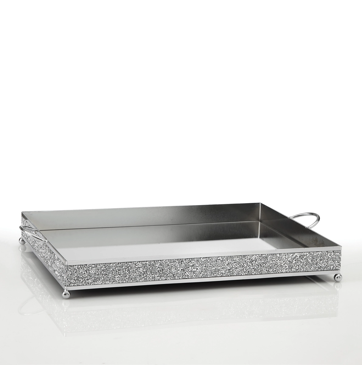 Ορθογώνιος μεταλλικός δίσκος με καθρέφτη και ασημένια στρασάκια