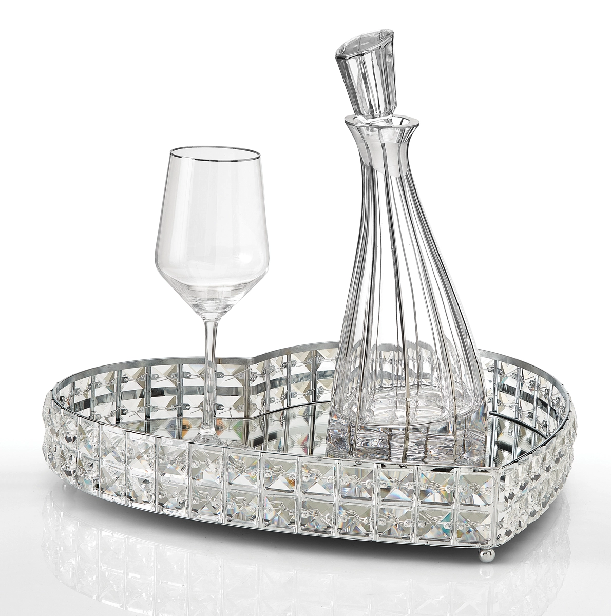 Ασημένιο δίσκο σε σχήμα καρδιάς με καθρέπτη και κρύσταλλα, διαστάσεων (40x28x7cm).