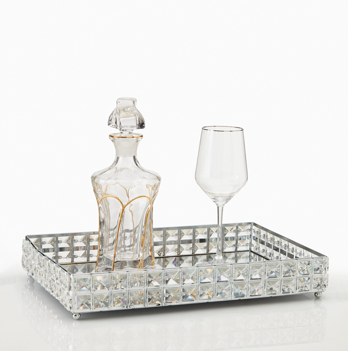 Ορθογώνιο ασημένιο δίσκο με καθρέπτη και κρύσταλλα, διαστάσεων (40x28x7cm).