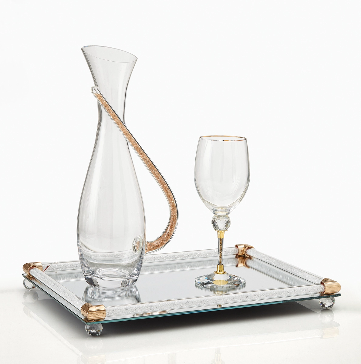 Σετ δίσκος με ποτήρι κρασιού και καράφα κρυστάλλινα