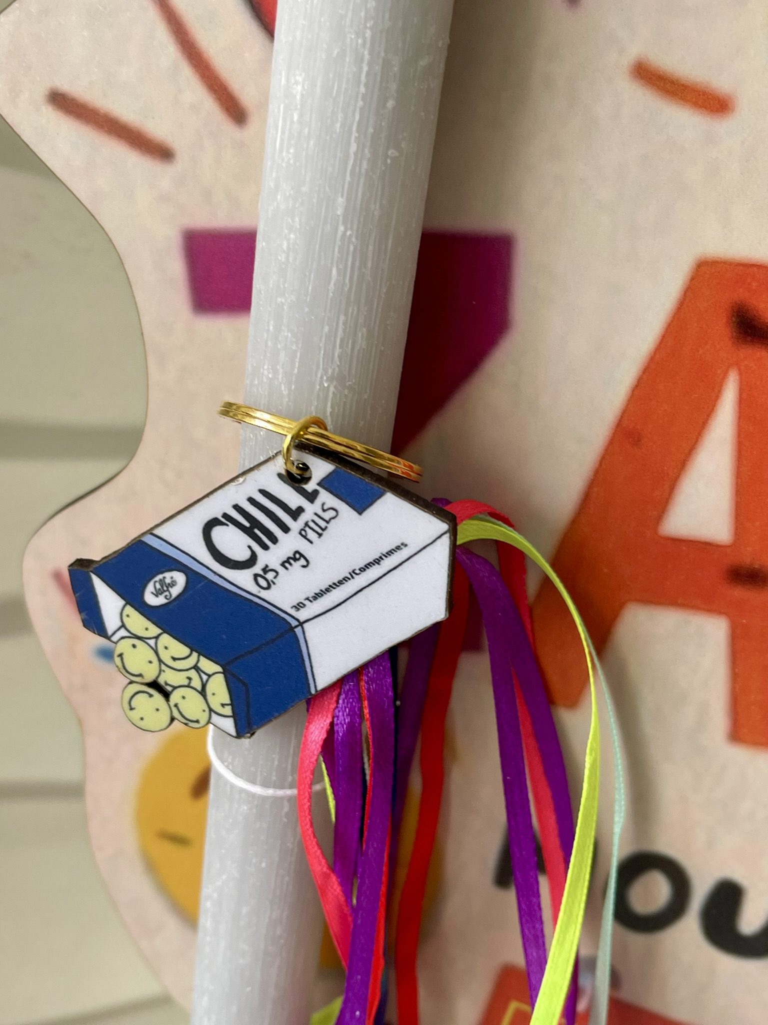 Xειροποίητη πασχαλινή αρωματική λαμπάδα ”Zanax”ξυλινη φιγούρα στοιχείο με ασορτί ξύλινη φιγούρα stand .