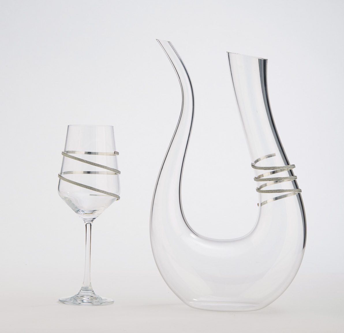 Κρυστάλλινο ποτήρι κρασιού, στολισμένη με ασημένια βέργα, διαστάσεων (22x9cm).