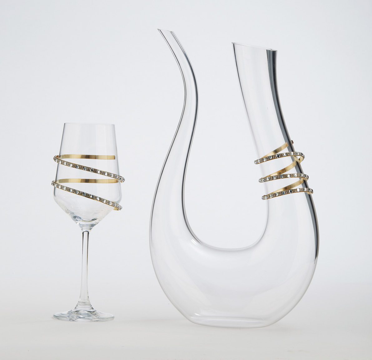 - Κρυστάλλινη καράφα σε σχήμα άρπας, στολισμένη με χρυσή βέργα, διαστάσεων (34x19cm).