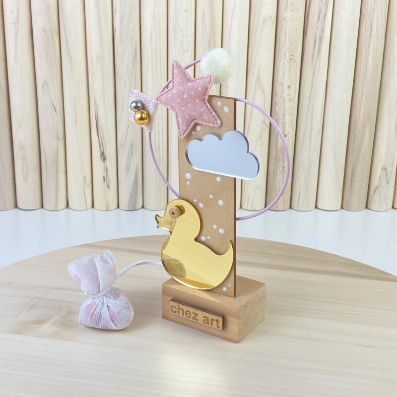 Ξύλινο διακοσμητικό επιτραπέζιο, σε ροζ, χρυσό και ασημί αποχρώσεις, με θέμα παπάκι.