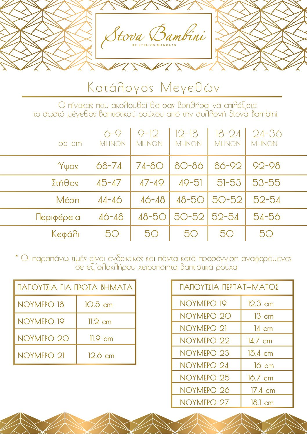 Διαθέσιμα μεγέθη: 6-36 μηνών και κατά παραγγελία μεγαλύτερα μεγέθη. Όλη η συλλογή σχεδιάζεται και κατασκευάζεται στην Ελλάδα.