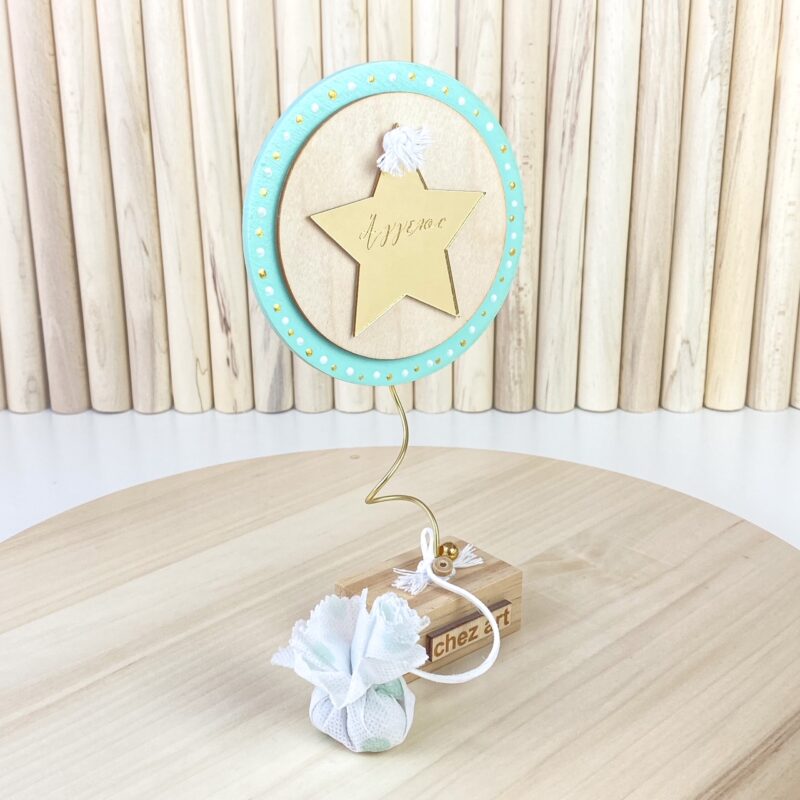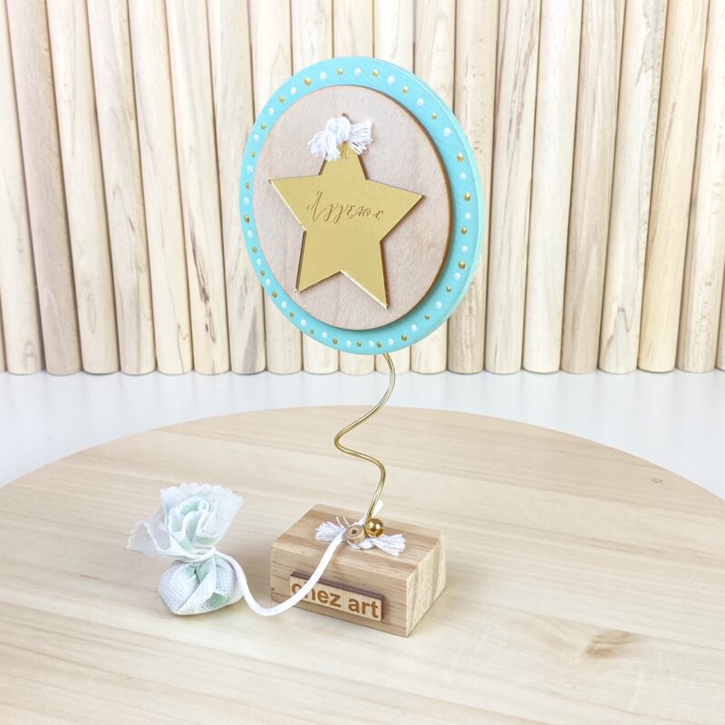 Ξύλινο διακοσμητικό επιτραπέζιο, σε βεραμάν χρυσό αποχρώσεις, με θέμα αστέρι και χάραξη το όνομα του παιδιού!